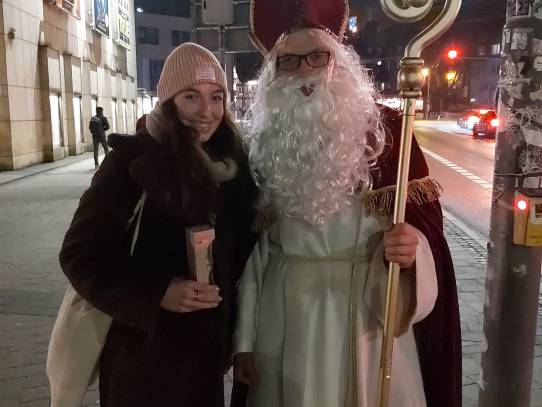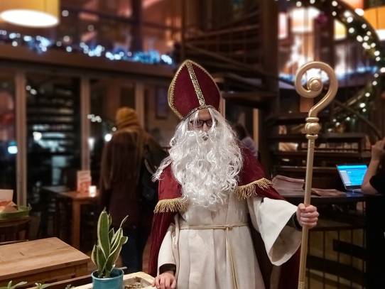 Von dem ein oder der anderen waren die Schuhe tatsächlich geputzt. Am 6. Dezember machte sich der Heilige Nikolaus gemeinsam mit seinem helfenden Engeln auf Kneipentour durch Marburgs Oberstadt. Er wollte in diesem Jahr den Nachtschwärmerinnen und Nachtschwärmern von Marburg auf den Straßen und in den Restaurants begegnen. Natürlich kam er traditionell nicht mit leeren Händen. Gemeinsam mit den Gästen wurde um Freigetränke und kleine Aufgaben würfeln und so seinen Ehrentag ein wenig anders als gewohnt gefeiert. "Die Botschaft des Heiligen Nikolaus ist nicht nur für kleine Kinder relevant", beschreibt Claudia Plociennik, Referentin für Citypastoral in Marburg und Organisatorin der Aktion das Vorhaben, "Teilen, Nächstenliebe und Hoffnungsbringer sind wichtige Themen für klein und groß." Und natürlich sollte die Aktion Freude schenken und verbreiten.