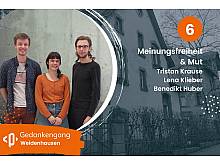Tristan Krause, Benedikt Huber und Lena Klieber des Hannah-Arendt-Debattierclubs sprechen über Meinungsfreiheit.